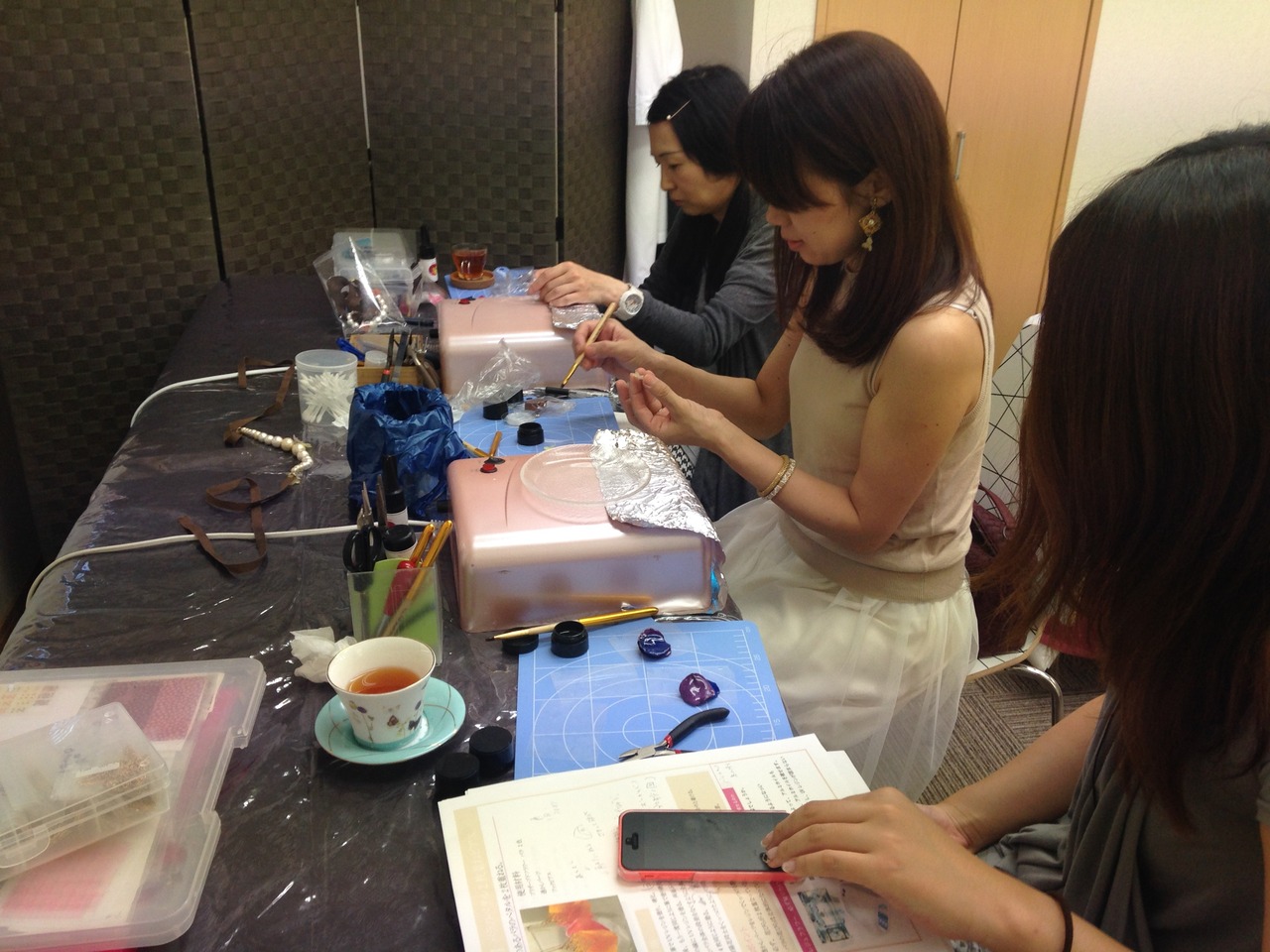 本物のお花をUVレジン液で加工してアクセサリーを作る、レジュフラワー体験レッスンを受講していただく事ができます。